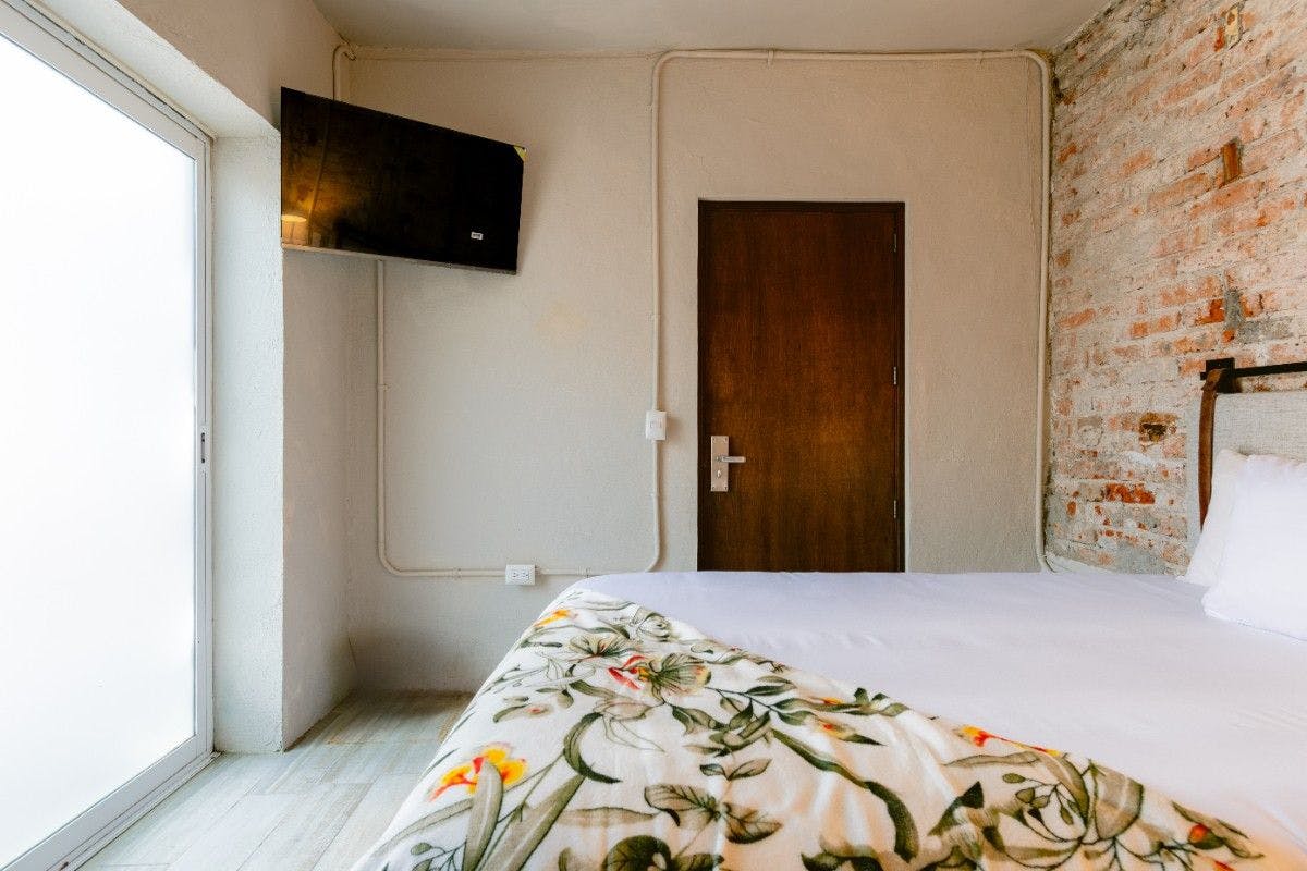 Comfortable and beautiful room with a double bed, ideal for trips with friends, business people, or family. Located on the first or third floor, subject to availability. It features a private bathroom, 40-inch Smart TV, panoramic mirror, and complimentary amenities for a comfortable stay.